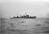 Pansarskeppet Drottning Viktoria vid utrustningspiren Pansarskeppet Gustav V i bakgrunden.