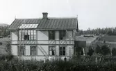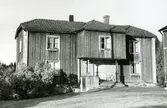8-kantigt lusthus i trädgården. Vägg slätpanelad, rödfärgad. Spåntak med svarvad kula i toppen.