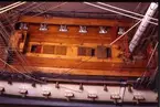 Basutställning i mastrummet i Sjöfartsavdelningen. Utställningsinteriör med konst, galjoner, fartygmodeller m.m.