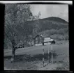 Skioptikonbild med motiv av trafik i korsningen Cornhill och Lombard street i London vid sekelskiftet 1900. Byggnaden tillhörde Liverpool and London and Globe Insurance Company. Bilden har förvarats i kartong märkt: ?