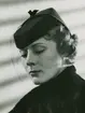 Porträtt av kvinna, möjligen modellen Hjördis Grundel-Starenius i hatt med brett hattband.