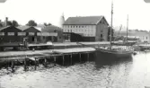 Lastbil från "Modins & Bäckmans åkeri" vid lastkajen.