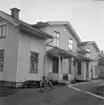 Exteriör på hus från hörnet av Hattmakargatan och Staketgatan. 9 juli 1951. Advokat A. Kriström, Brunkebergsbacken 14, Stockholm