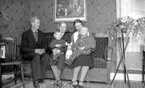 Mona-Charles med frön, Elsa Eriksson, Erik Gustavsson samt okänd. 1950-talet.