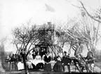 Exteriör. Stort sällskap på gårdsplanen framför större hus. Gullspångssamlingen. Bilder från Gullspång med omnejd.