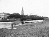 Vårflod i Gullspångsälven, före kraftverksbygget. Till vänster Norra Bruket, till höger Göta Holme.