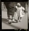 Porträtt av flicka, knäbild. Sittande, iklädd rutig klänning med vit brodyrunderkjol. Ambrotyp i ram. På bakstycket påklistrad blå etikett med svart tryck: "J.LUNDBERGH /Fotograf/Göthgatsbacken/&/No 2/Urvädersgränd No2/STOCKHOLM". Nordiska museet inv.nr 264545.