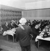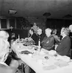 I förgrunden sitter souschefen vid försvarsstaben, generalmajor Sven-Olof Olson, till höger om honom sitter chefen för försvarsstaben, generallöjtnant Gunnar Eklund. Fjärde personen i den raden är generaldirektören för försvarets materielverk Ove Ljung. Mitt emot Ljung sitter marinchefen, viceamiral Bengt Lundvall.
