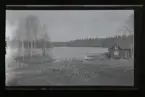 "Dammstugan (med översvämning) Axel Fredriksson född här 1893."