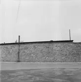 En trottoar och en stenmur som ligger utmed Kvarnbygatan 29 och 31, okänt årtal. I början av muren finns en trappa (Finketrapporna) som leder upp till ett par småhus omgivna av lummiga träd.