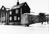 Till vänster ses "Eneborg" på Kvarnbygatan 23. Bortanför detta ligger Sven Ahlins Herrekipering på Kvarnbygatan 25. Till höger ligger huvudentrén till Papyrus industriområde. Okänt årtal.