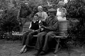 TVÅ SYSKON VID ETT TRÄDGÅRDSBORD