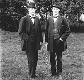 Stående fr.v: Ernst Sahlin, okänd, okänd, Elsa Borg, okänd, Lisa Sahlin, Signe Sahlin, okänd, okänd. Sittande bakre raden fr.v: Lydia o Aron Sahlin, Karl Sahlin, Einar o Elsa Sahlin, Bertil Sahlin, Gustav Sahlin, Erik Sahlin. Sittande främre raden fr.v: Hans Sahlin, okänd, okänd, Ella Sahlin med barnen Lars o Laila framför. Jan-Erik Borg o Ernsts styvson Åke.