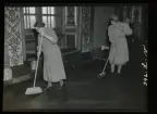 Text på montering i arkivet: Bror Backe och hans syster, fru Bengtsson, barka nät vid hamnen.