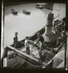 GG 628 Neptun under ommålning i Vrångö hamn. Vid målningsarbetet används flottar med låga relingar. Axel Magnusson, Evert och John Karlsson (Axel i Håla, Evert te Billas och Jon te Kålles) arbetar.