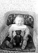 Babykläder, 6 april 1966 En baby ligger i en barnvagn och tittar. Den är iklädd sparkdräkt, jacka och mössa. Vid huvudänden lligger ett gosedjur. or. Han går nedför en kort trappa utomhus.