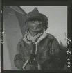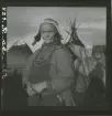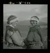 Paulus Utsi kör expeditionen över Akkajaure, Vaisaluokta i Jokkmokks socken, Lappland. Två båtar med passagerare på vattnet, i bakgrunden ses Pålnotjåkko och Akka.