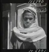 Skansen Ringleksbarn. En ung kvinna i folkdräkt, utomhus på Skansen.