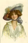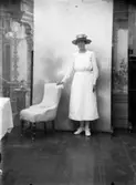 Text på kortets baksida: "Döttrar till Stadsfiskal A.P. Mellqvist. Ellida M, äldst (står). Betty M. (Hattaffär) sitter".