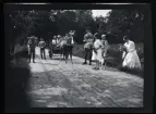 Överstelöjtnant Olof Kullberg med dotter till häst på grusväg vid Bodens Ingenjörkår.