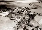 Byvägen genom Östra Åsmundhyttan, med en vy över "Ollas", Åsmundshyttan nummer 4. Söderåsen i bakgrunden. Bilden tagen omkring 1925. Bilden finns med Torsåkers Fotohistoriska Sällskap. Bildsida 1