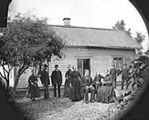 Brånströms kvarn, Stora Hede, Saleby. Ägdes före sekelskiftet av August Berg 1855-1939. Stående snett bakom: hans hustru Eva. Sittande: Karl Svensson, Rävagården, bakom honom hans hustru Betty, syster till Eva Berg.