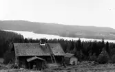 Hemmansägaren Henning Jansson, 71 år med syster Beda, 74 år utanför sin finska rökstuga i Ritamäki, Lekvattnet, som de lämnade i oktober 1964. Den sista bebodda finska rökstugan.