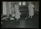 Text på montering i arkivet: Fru Tekla Jönsson "bödar" nät på sin gård. Varvsgatan 12, kv. Kettingen