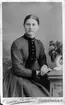 Text på kortets baksida: "Fru Charlotta Pettersson f. Hedström. F. 9/7 1824 d. 27/6 1908. Maka till tunnbindarmäst. J. Chr. Pettersson".