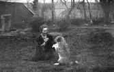 "Bengt Olsson med sin schäfer Olsson vid den 10 m djupa och vattenfyllda brunnen." Våmmedal i Kållered, år 1984. För mer information om bilden se under tilläggsinformation.