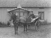Bilden med de tre personerna och två hästar är Fritz Svensson (till vänster), den unga damen är hans syster Lisa Svensson och mannen till höger är brodern Olof Svensson. Bilden är tagen på landsvägen utanför deras hem. Fritz Svensson föddes 1894 och blev Fåglaviks första (och enda) taxichaufför då han och fadern köpte sin första taxibil år 1921. Lisa var född år 1900 och är här 15 år. Hon övertog vid moderns död år 1920, ansvaret för Fåglaviks telegrafstation samt skötte om handelsboden som fadern startat, liksom en matbespisning i hemmet till ensamstående glasbruksarbetare. Olof född 1896, flyttade till Strömstad efter giftemål och blev lantbrukare.
