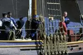 Hortens sjösättning. i bakgrunden minfartyget Bremön