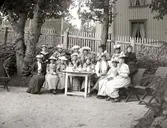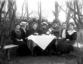 Kaffebjudning, 1905. Fyra damer sitter runt ett kaffebord.