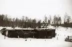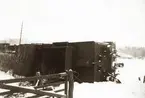 Lucia, Trafikolycka, Sörbyvägen Lillån 13 december 1966 En bilolycka på Sörbyvägen. En personbil med släpvagn och en lastbil har krockat. Tre poliser syns också på bilden. Ett vitt hus och en lada syns i bakgrunden. Det ligger snö på marken.