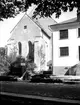 Vägstation E5, Vadstena. Garagebyggnad. På garageplan lastbil och paketbil (mindre lastbil).