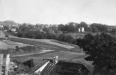 Kvarteret Tullnären, mellan Storgatan - Trädgårdsgatan och Herrgårdsgatan - Paradisgränd. Exteriör. Fasaden mot Paradisgränd. Bilar står parkerade på grusvägen.