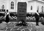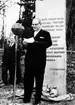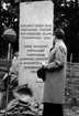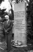 Kommunalordf. Magnus Vangerud vid monumentet över fallna Gruebor i kriget 1940.