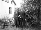 Enligt text på fotot: "I trädgården vid Kavlås. Hit kommo vi med järnväg från Stenstorp den 25 juli vid 12-tiden. Denna egendom omfattade ca 1400 tnd. Den ägdes av Riksmarskalken Frih. von Essen. Denne fyller 90 år den 30 dennes. Var av ålderdom sängliggande". Enligt notering: "Kavlås egendom, 25 juli 1921".