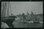 Sjöbodarna från hamnpiren. I förgrunden jullar, Albin Nygrens närmast.