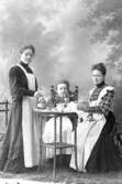Tre kvinnor i svenska folkdräkter.