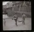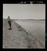 568 F. Stieg Trenter, Torremolinos. Män vittjar fiskenät från båt uppdragen på stranden.