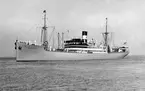 Foto i svartvitt visande last-& passagerarmotorfartyget "MEONIA" av Köpenhamn i Köpenhamn 1939-40.