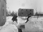 Skara. Idrott: GSIK vid SI-stugan 1955. Oskar Lefvander i varpa-tagen. Foto: Stig Rehn 3.