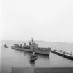 Foto från pansarskeppet GUSTAF V sjösättning den 31.1 1918 Fr. vänster: T Herlin, J Falkman, A.v.Eckerman, G Dyrssen och E. Hägg
