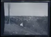 "Nischnij Tagil. N. Tagil med fabrikerna längst bort där röken stiger ur en skorsten, samt längst bort till höger "vårdberget" med brandtornet och signalmast"