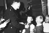 Konstapel Gustav Warnicke på morgonpass framför Sehlbergs Urhandel. 27 februari 1947.