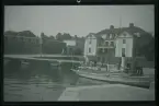 Vy över Motala ström från Göta hotells terass. Hotellet stod klart lagom till den stora konst- och industriutställningen 1906, och dess terass blev mycket populär och välbesökt. På strömmens norra sida löper Norra Strömsgatan utmed inre hamnens kaj, som vid tiden bland annat tjänade ångbåtstrafiken mellan Norrköping och Stockholm.