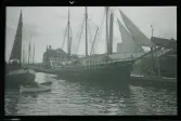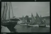 1690 New York allmänt (N.Y. Herald Tribune). Pråmar på Hudson-floden.