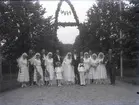 Enligt senare noteringar: "Brudparet Gösta Hugo Ramsten (Norrköping) och Linnea f. Moberg, Torreby, tillsammans med tärnor och marskalkar. I äreportens krans står initialerna 'R' och 'M'. Framför uppvaktningen står syskonen Karin och Lars Ramsten, brorsbarn till brudgummen." (BJ) Id.: Lars Ramsten, Falun.