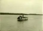Ångslupen Rex. tillhörde godsäg. N Johansson. Användes bl.a till att frakta mjölk mellan Frösåker och mejeriet på Ängsö (nuv. tvätten). Avyttrad före 1920. Ingegerd Ral f 1898, var med på denna färd. Lustresa till Sundbyholm. Grundstötte i Sundbyholms närhet. Fru Ral var vid denna resa 11-12 år gammal. Ångslup av c 10 meters längd. Helt öppen med soltak uppspänt. Bensinmotor inombords [? antingen är det en ångslup eller motorslup??] Ångslupen innehades av Sture Hals morfar på Lindö gård.... Fotografiet ingår i Kärrbo Hembygdsförenings samlingar.....Ångslupen Rex.....ägare patron N. J. Johansson, Frösåker [och] som gjorde affärsresor t ex till Örsundsbro med Rex. Här på utflykt.och grundstött... I vattnet sonen Gerhard Johansson.